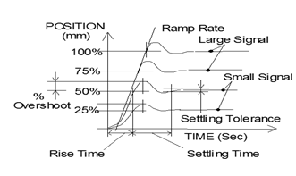 在階躍響應中,當給定的指令信號時(shí),很容易達到斜坡極限,斜坡極限是下圖中的那根斜線(xiàn)(上升的******斜率)。真正的閉環(huán)動(dòng)態(tài)階躍響應性能僅在階躍幅值上表現出來(lái),此時(shí)不會(huì )達到斜坡極限。當測試階躍響應時(shí),一定要看是大信號測試還是小信號測試。對于小信號的階躍測試-主要考察的參數為: